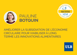 Pauline Botquin a terminé son master de bioingénieure en sciences agronomiques à l’école de bioingénierie de Bruxelles, à l’ULB en août 2022. Elle réalise actuellement un bachelier en langues et lettres modernes à la faculté de lettres, traduction et communication de l’ULB.